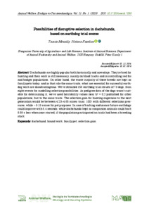 | Kivonat, rövid leírás: | Dachshunds are highly popular both historically and nowadays. They’re bred for hunting and their work is still necessary, mainly on blood tracks and in controlling red fox and badger populations. On other hand, the waste majority of these breeds are kept as family pets today, and in that role the same traits, what are essential for successful earthdog work are disadvantageous. We’ve obtained 156 earthdog trial results of 73 dogs, from eight events for modelling selection possibilities. As pedigree data of the dogs wasn’t suitable for determining it, we’ve used heritability values near h2 = 0,2 published for other populations, but to the same traits. The selection gain for hunting eagerness to the next generation would be between 4.23–4.65 scores (max. 100) with different selections pressures, while – 9.19 scores for pet purposes. In case of barking endurance future earthdogs could improve with 6,4 seconds, while dachshunds kept as companion animals could bark 8.89 s less when once started, if the population participated on trials had been a breeding stock. |