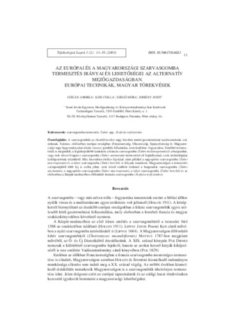 Csorbainé Gógán, Andrea és Kiss, Csilla és Szegő, Dóra és Dimény, Judit (2003) Az európai és a magyarországi szarvasgomba termesztés irányai és lehetőségei az alternatív mezőgazdaságban : Európai technológiák, magyar törekvések. TÁJÖKOLÓGIAI LAPOK / JOURNAL OF LANDSCAPE ECOLOGY, 1 (2). pp. 135-143. ISSN 1589-4673
