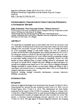 Raether, Julius és Osiako, Peter és Szente, Viktória (2025) Sustainability Challenges in Omni-channel Retailing: A Systematic Review. REGIONAL AND BUSINESS STUDIES, 17 (1). pp. 89-108. ISSN 2061-2311