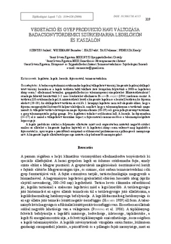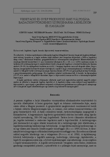 Szentes, Szilárd és Wichmann, Barnabás és Házi, Judit és Tasi, Juliánna Eszter és Penksza, Károly (2009) Vegetáció és gyep produkció havi változása badacsonytördemici szürkemarha legelőkön és kaszálón. TÁJÖKOLÓGIAI LAPOK / JOURNAL OF LANDSCAPE ECOLOGY, 7 (2). pp. 319-328. ISSN 1589-4673