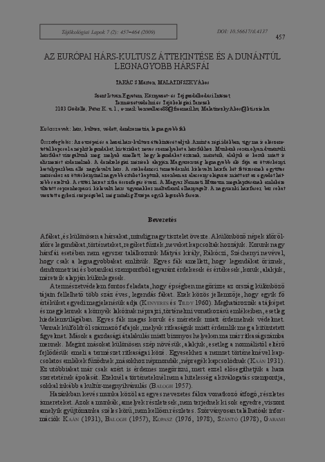 Takács, Márton és Malatinszky, Ákos (2009) Az európai hárs-kultusz áttekintése és a Dunántúl legnagyobb hársfái. TÁJÖKOLÓGIAI LAPOK / JOURNAL OF LANDSCAPE ECOLOGY, 7 (2). pp. 457-464. ISSN 1589-4673