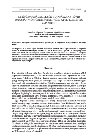 Pető, Ákos (2009) A növényi opálszemcsék kutatásának rövid tudománytörténeti áttekintése a felfedezéstől napjainkig. TÁJÖKOLÓGIAI LAPOK / JOURNAL OF LANDSCAPE ECOLOGY, 7 (1). pp. 39-63. ISSN 1589-4673