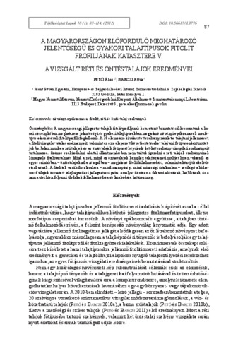 Pető, Ákos és Barczi, Attila (2012) A Magyarországon előforduló meghatározó jelentőségű és gyakori talajtípusok fitolit profiljának katasztere V. : A vizsgált réti és öntéstalajok eredményei. TÁJÖKOLÓGIAI LAPOK / JOURNAL OF LANDSCAPE ECOLOGY, 10 (1). pp. 87-114. ISSN 1589-4673