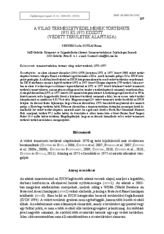 Centeri, Csaba és Gyulai, Ferenc (2013) A világ természetvédelmének története 1971 és 1975 között (védett területek alapítása). TÁJÖKOLÓGIAI LAPOK / JOURNAL OF LANDSCAPE ECOLOGY, 11 (1). pp. 169-182. ISSN 1589-4673