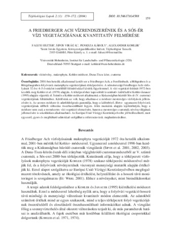 | Kivonat, rövid leírás: | 2001-ben hetedik alkalommal került sor a Friedberger Ach, a Forellenbach, a Höhgraben és a Hörgelaugraben folyóvizek makrophyta vegetációjának térképezésére. A németországi Friedberger Ach vízfolyásait 32 éve 4–5 évenként ismétlődő felmérésekkel kísérik figyelemmel. A vízi vegetáció leírását 1972-ben kezdték meg Kohler et al. (1978) alapján. A térképezéshez kapcsolódó kvantitatív kiértékelést Kohler-Janauer (1995) alapján végeztük el. Szintén a Kohler-módszert alkalmaztuk a Kiskunságban húzódó Sós-ér (V. csatorna) vegetációjának feltárásához. Kérdésünk az volt, hogy alkalmas-e a módszer mesterséges vízfolyások jellemzésére is. Az azonos módszer és adatfeldolgozás garantálja, hogy a különböző, illetve ugyanazon folyóvizek vegetációjának időbeli változása összehasonlítható legyen. Jelen munkánk alapján kijelenthetjük, hogy a módszer nem csak a természetes vízi vegetáció elemzésére, hanem a mesterséges csatornák növényvilágának jellemzésére is sokoldalúan alkalmazható. Az Európai Unió Vízügyi Keretirányelveibe jól beilleszthető, mert egyszerű, gyors és megbízható adatokkal szolgálhat a referenciavizek meghatározásához. |