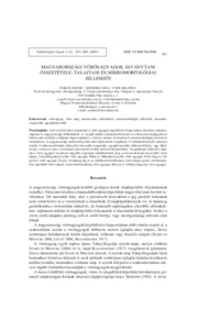 | Kivonat, rövid leírás: | A bevezető részben ismertetjük a vörös agyagok képződésével kapcsolatos nézeteket, tulajdonságaikat és magyarországi előfordulását. A vizsgált minták származási helyének és a helyszíni megfigyelések leírása után közöljük a talajtani alapvizsgálatok, a fizikai, kémiai, ásványtani és mikromorfológiai elemzések eredményeit. A magyarországi módszerkönyvben leírt eljárásokkal vizsgáltunk 17 különböző helyről származó mintát. A mikromorfológiai jellemzőket duzzadás-zsugorodás, agyagbemosódás, hidromorf hatás, vagy áthalmozás, szénsavas-mész cementáció, pórusmenti kiválás jeleként interpretáltuk. Vizsgálataink értékelése alapján a vörös agyagok következő nagyobb csoportjait különböztettük meg: az Észak-Borsodi karsztvidék vörös talajai, Tokaj-Hegyalja fosszilis vörös agyagai, Mátra és Mátraalja fosszilis vörös agyagai, Felső-Zagyva völgyének vörös agyagai, Északi- középhegység és az Alföld peremvidékének vörös talajai, permi vöröshomokkőn képződött vörös talajok, Szekszárdi dombság vörös agyagai, Mecsek és Villányi hegység vörös agyagai. |