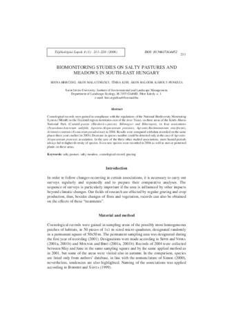 Herczeg, E és Malatinszky, Ákos és Kiss, Tímea és Balogh, Ákos és Penksza, Károly (2006) Biomonitoring studies on salty pastures and meadows in South-East Hungary. TÁJÖKOLÓGIAI LAPOK / JOURNAL OF LANDSCAPE ECOLOGY, 4 (1). pp. 211-220. ISSN 1589-4673