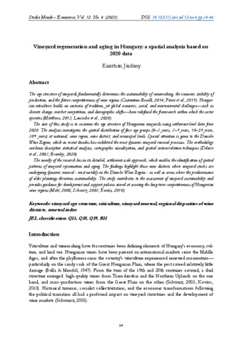Járdány, Krisztián (2025) Vineyard regeneration and aging in Hungary: a spatial analysis based on 2020 data. STUDIA MUNDI - ECONOMICA, 12 (4). pp. 34-46. ISSN 2415-9395