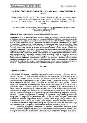 BERECZ, Tibor és FEHÉR, Luca és GYOVAI, Gábor és HÁGA, Krisztián és KAZINCZY, István Gábor és KISZEL, Kata Zsófia és MÉSZÁROS, Melinda Márta és MORVAI, Edina és PÁPAY, Gergely és PETROVSZKI, János és Prohászka, Viola Judit és Juhász, Brigitta és RUFF, Sarolt és SZAKÁCS, Ágnes (2015) A gödöllői helyi jelentőségű platánfasor állapotfelmérése (2014). TÁJÖKOLÓGIAI LAPOK / JOURNAL OF LANDSCAPE ECOLOGY, 13 (1). pp. 105-113. ISSN 1589-4673