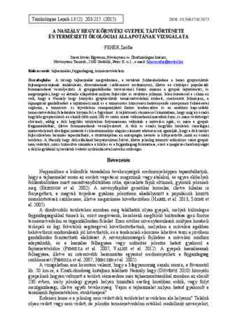 Fehér, Zsófia (2015) A Naszály hegy környéki gyepek tájtörténete és természeti ökológiai állapotának vizsgálata. TÁJÖKOLÓGIAI LAPOK / JOURNAL OF LANDSCAPE ECOLOGY, 13 (2). pp. 203-215. ISSN 1589-4673