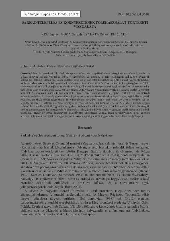 Kiss, Ágnes és Bóka, Gergely és Saláta, Dénes és Pető, Ákos (2017) Sarkad település és környezetének földhasználat-történeti vizsgálata. TÁJÖKOLÓGIAI LAPOK / JOURNAL OF LANDSCAPE ECOLOGY, 15 (1). pp. 9-19. ISSN 1589-4673