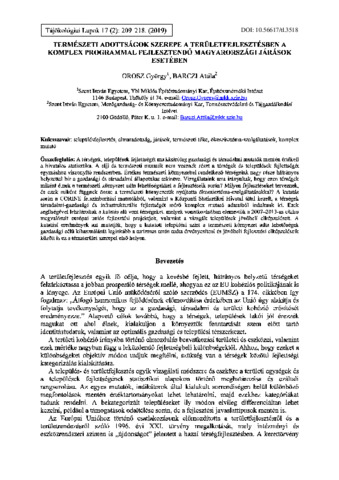 Orosz, György és Barczi, Attila (2019) Természeti adottságok szerepe a területfejlesztésben a komplex programmal fejlesztendő magyarországi járások esetében. TÁJÖKOLÓGIAI LAPOK / JOURNAL OF LANDSCAPE ECOLOGY, 17 (2). pp. 209-218. ISSN 1589-4673