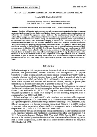Nel, Lyndre és Masoudi, Malihe (2020) Potential carbon sequestration across Szentendre Island. TÁJÖKOLÓGIAI LAPOK / JOURNAL OF LANDSCAPE ECOLOGY, 18 (2). pp. 165-173. ISSN 1589-4673