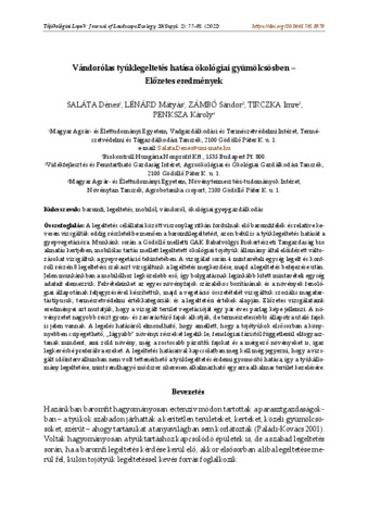 Saláta, Dénes és Lénárd, Mátyás és Zámbó, Sándor és Tirczka, Imre és Penksza, Károly (2022) Vándorólas tyúklegeltetés hatása ökológiai gyümölcsösben – Előzetes eredmények. TÁJÖKOLÓGIAI LAPOK / JOURNAL OF LANDSCAPE ECOLOGY, 20 (Suppl). pp. 77-91. ISSN 1589-4673