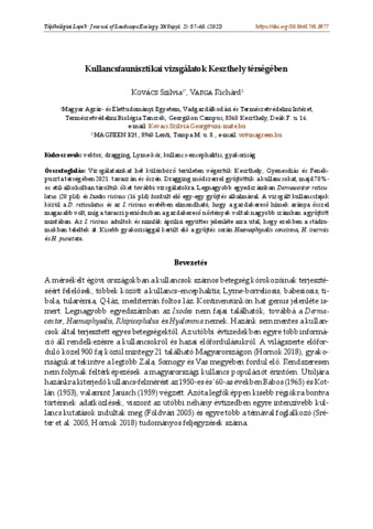 Kovács, Szilvia és Varga, Richárd (2022) Kullancsfaunisztikai vizsgálatok Keszthely térségében. TÁJÖKOLÓGIAI LAPOK / JOURNAL OF LANDSCAPE ECOLOGY, 20 (Suppl). pp. 57-63. ISSN 1589-4673