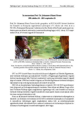 Centeri, Csaba (2023) In memoriam Prof. Dr. Johannes (Hans) Renes. TÁJÖKOLÓGIAI LAPOK / JOURNAL OF LANDSCAPE ECOLOGY, 21 (1). pp. 107-108. ISSN 1589-4673
