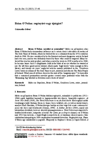 Csizmadia, Gábor (2025) Brian O’Nolan: regényíró vagy újságíró? ACTA SCIENTIARUM SOCIALIUM (52). pp. 27-40. ISSN 1418-7191