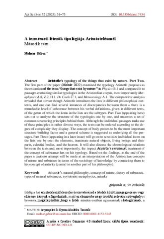 Molnár, Gábor (2025) A természeti létezők tipológiája Arisztotelésznél. Második rész. ACTA SCIENTIARUM SOCIALIUM (52). pp. 51-75. ISSN 1418-7191